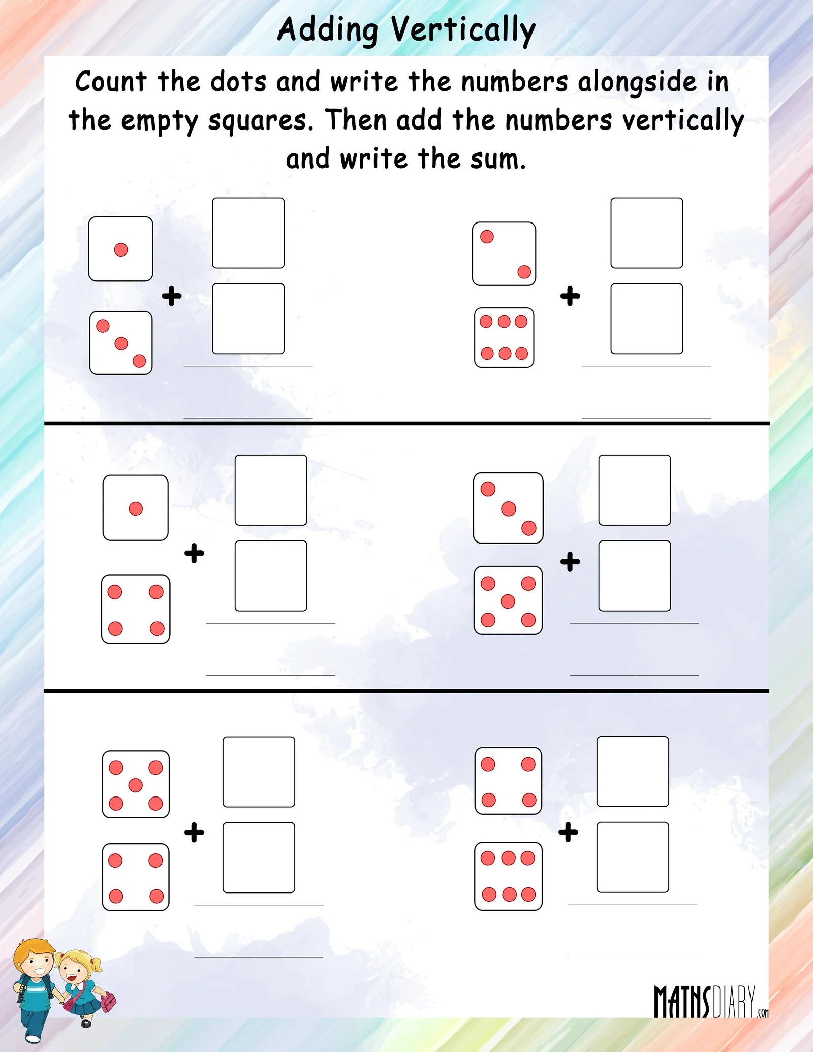 adding vertically vertical addition math worksheets - adding amounts math worksheets mathsdiarycom